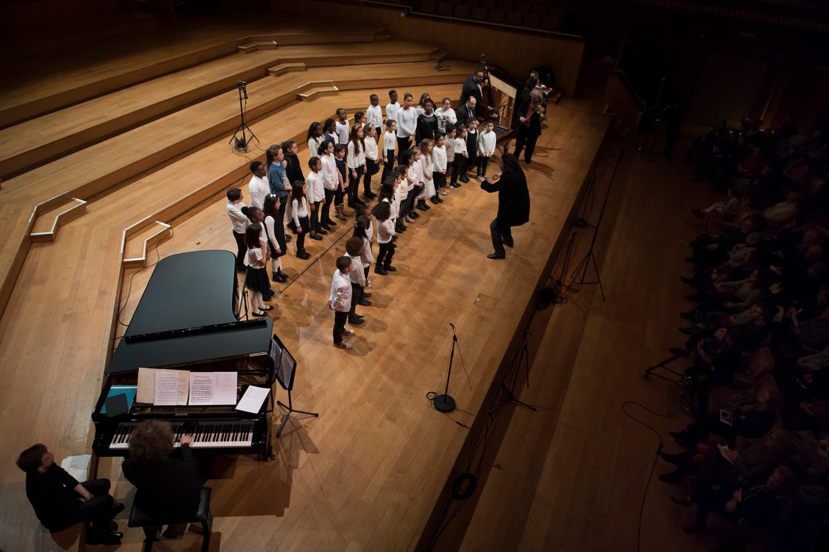 « Les attentats de Bruxelles. Le 21 mars 2016, donc la veille, a eu lieu le premier concert public avec les écoles 14 et 6 dans le cadre d’un rassemblement annuel des écoles de Molenbeek. Cela s’est passé sur la place communale, avec Julien Libeer au piano. Le jour des attentats, les enfants et les parents ne savaient pas quoi faire. Une répétition était prévue et M. Speeckaert a consigné toute l’école dans la grande salle. On ressentait le stress, mais on a fait chanter les 25 choristes comme si de rien n’était. Les parents entraient un à un dans la salle pour venir chercher leurs enfants. Ils étaient aussi stressés, mais se détendaient en voyant les choristes chanter. C’est là qu’on s’est dit qu’il fallait vraiment continuer ! »